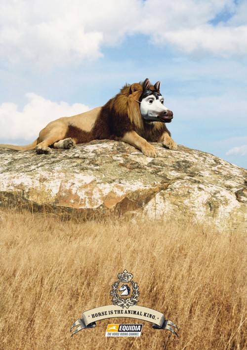 Лошадь - царь зверейДля того, чтобы в полной мере передать свою любовь к таким замечательным животным как лошади, телеканал Equidia заказал у агентства H-Paris рекламную кампанию, в которой обычного и всем нас знакомого царя зверей льва превратили в коня.Текст: Лошадь - царь зверей. Equidia. Канал, посвященный скачкам. Агентство: H-Paris, France Креативный директор: Gilbert Scher Копирайтеры: Nicolas Poillot, Philippe Boucheron Фотограф: Joseph Van Os Ретушь: Asile |