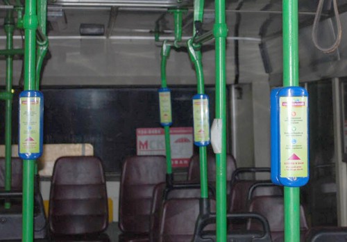 Промобоксы размещаются на вертикальных поручнях на уровне глаз взрослых пассажиров и заметны с любого места в транспорте (размер рекламного поля составляет 58х170 мм). Находясь на расстоянии вытянутой руки, конструкция обеспечивает высокую продолжительность контакта (в среднем - в течение получаса). Высокая частота повторных контактов (внутри одного транспортного средства размещается порядка восьми двусторонних промобоксов) в сочетании с отсутствием других рекламных носителей (весь салон брендируется под одного рекламодателя) обеспечивает эффективный охват целевой аудитории.