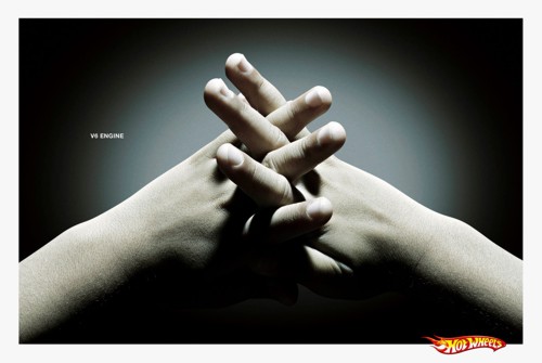 Hot Wheels: двигатель V6 просто и доступноНа рекламных плакатах Hot Wheels от агентства Ogilvy мы наблюдаем детские руки, сложенные по форме, которая напоминает двигатель V6. Таким образом, Ogilvy говорит о том, что продукция под брендом Hot Wheels помогает вашему ребенку не только интересно провести время, но и обучает его. Тэглайн: Двигатель V6 Агентство: Ogilvy Budapest, Hungary Копирайтер: Gabor Spielmann Арт директор: Bruno Almeida Фотограф: Artluzstudio |