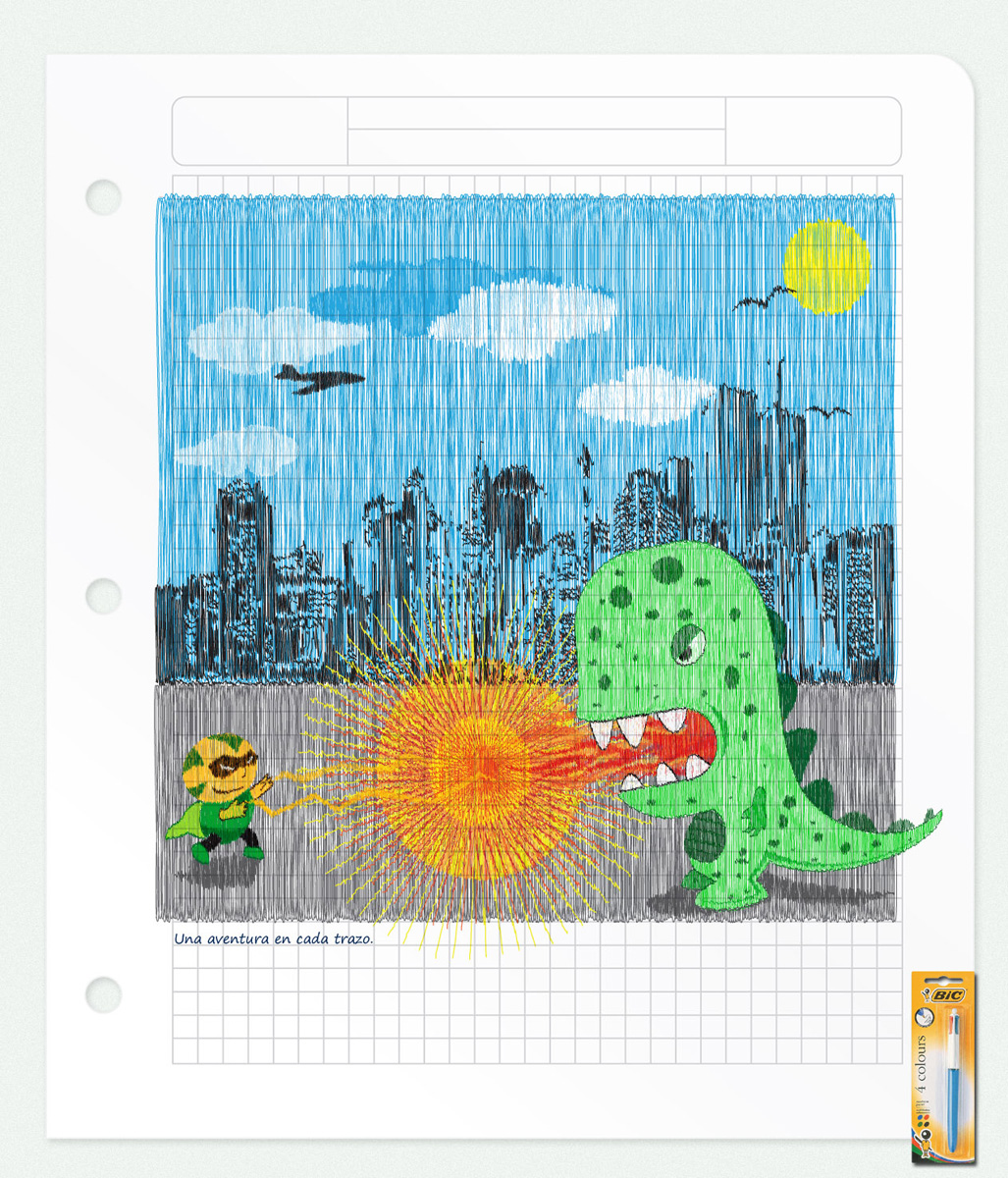 BIC: рисуйте в цветеВсе мы были детьми, и с полной уверенностью можно сказать, что большинство из нас рисовало на полях тетрадок, фантазируя о далеких далях и лихих приключениях. Агентство из Аргентины LV утверждает, что с новой ручкой BIC, в которой в одном корпусе собраны 4 цветных стержня, детские рисунки и мечты обретут цвет. Тэглайн: Приключение в каждом взмахе пера Агентство: LV, Argentina Арт директор: Andres Benavides Иллюстрации: adsoftheworld.com |