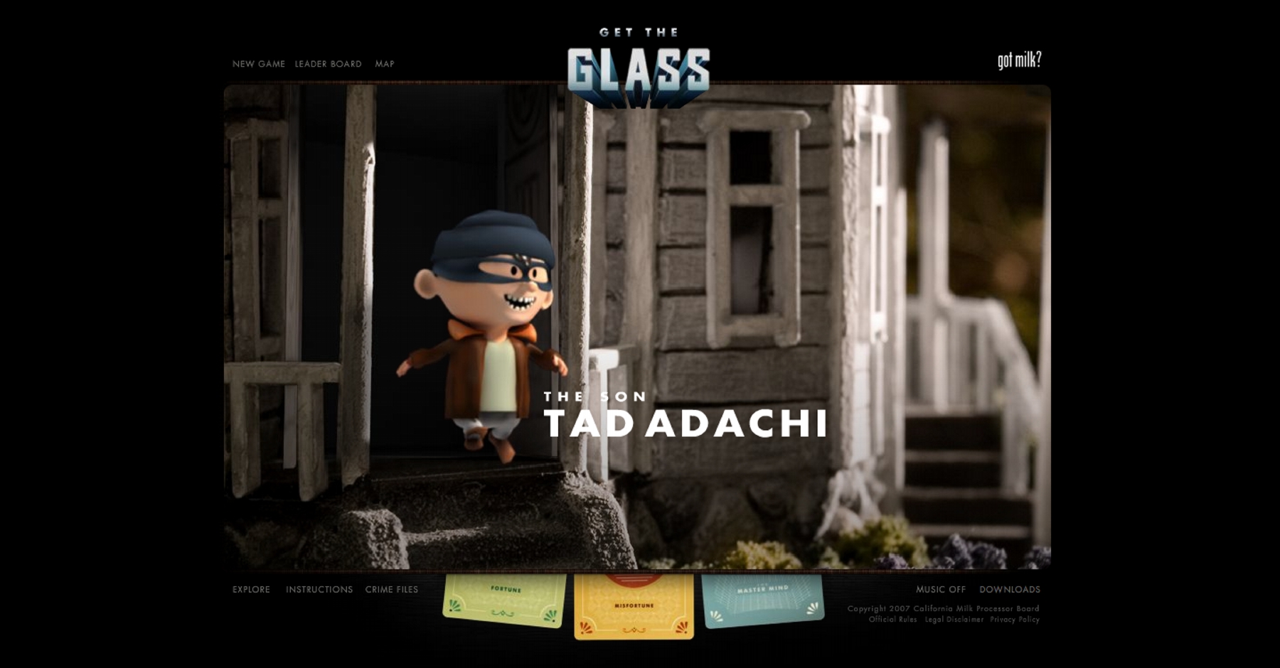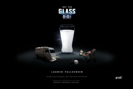 Он-лайн кампания «Get the Glass» для California Milk Processors агентства Goodby Silverstein & Partners. На сайте GETTHEGLASS.COM пользователям предлагают поиграть в захватывающую игру, а заодно и узнать больше о рекламируемом молоке.