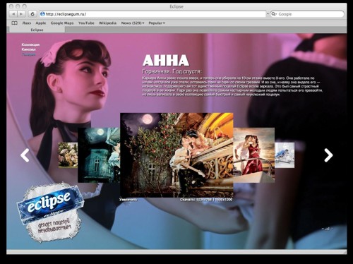 Поцелуй BBDO Moscow забыть невозможно. Новые ролики Eclipse19 мая на телеканалах, в наружной рекламе, прессе и Интернете началась новая рекламная кампания в поддержку бренда Eclipse, разработанная агентством BBDO Moscow.В коммуникации с потребителем бренд Eclipse всегда рассказывал истории о близости между мужчиной и женщиной, главным элементом которых была долгая свежесть дыхания. На этот раз в телевизионном ролике девушки вспоминают самые незабываемые в жизни поцелуи. "Идея кампании "Незабываемый поцелуй" базируется на простом инсайте, - рассказывает креативный директор BBDO Moscow Татьяна Тютюнник,- любому парню лестно, если девушка будет вспоминать, как она с ним целовалась. Даже если это был просто мимолетный поцелуй…" Но в памяти остаются не все поцелуи. Eclipse настолько сильно освежает дыхание, что поцелуй с ним становится поистине незабываемым. В ролике с помощью Eclipse главный герой оставляет незабываемый след в памяти всех трех девушек (их историю можно проследить на сайте www.eclipsegum.ru). В прессе и наружной рекламе утверждается, что нет необходимости притворяться кем-то, чтобы твой поцелуй был незабываемым - для этого всего лишь необходимо жевать Eclipse. В качестве стилистики для ролика и биллбордов был выбран модный сегодня pin-up стиль 40-х годов. Съемки проходили в Бразилии, в отеле, построенном именно в эти годы. Сейчас он уже не функционирует, а используется только для подобных съемок и вечеринок. Состав творческой группы Клиент: Wrigley Group brand manager: Johnny Heiselberg Brand manager: Иван Федоров Агентство: BBDO Moscow Управляющий директор: Макс Такер Креативный директор: Татьяна Тютюнник Директор по работе с клиентами: Марина Вершинина Старший менеджер по работе с клиентами: Александр Беляков Директор по стратегическому планированию: Полина Васильева Арт-директор: Ралука Строе Копирайтер: Илья Петров Продюсеры: Елена Гажевская, Елена Васюкова Продакшен ролика: Directors Film Company Продюсер: Richard H. Coll Режиссер: Hadi Продакшен фотосъемки: Carioca Продюсеры: Mircea Dicu, Marius Erhan Фотограф: Dragos Coman Сайт и баннеры: BBDO Interactive Руководитель проекта: Александр Иванов (управляющий директор BBDO Interactive) Творческий директор: Павел Соловьев Дизайнер: Артем Ефимцев Флеш-программист: Роман Трушков Флеш-аниматор: Владимир Данилов Баннер-мейкер: Антипов Алексей |
