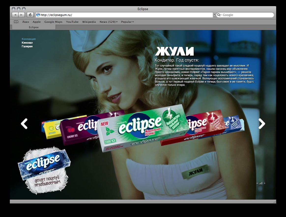Поцелуй BBDO Moscow забыть невозможно. Новые ролики Eclipse19 мая на телеканалах, в наружной рекламе, прессе и Интернете началась новая рекламная кампания в поддержку бренда Eclipse, разработанная агентством BBDO Moscow.В коммуникации с потребителем бренд Eclipse всегда рассказывал истории о близости между мужчиной и женщиной, главным элементом которых была долгая свежесть дыхания. На этот раз в телевизионном ролике девушки вспоминают самые незабываемые в жизни поцелуи. "Идея кампании "Незабываемый поцелуй" базируется на простом инсайте, - рассказывает креативный директор BBDO Moscow Татьяна Тютюнник,- любому парню лестно, если девушка будет вспоминать, как она с ним целовалась. Даже если это был просто мимолетный поцелуй…" Но в памяти остаются не все поцелуи. Eclipse настолько сильно освежает дыхание, что поцелуй с ним становится поистине незабываемым. В ролике с помощью Eclipse главный герой оставляет незабываемый след в памяти всех трех девушек (их историю можно проследить на сайте www.eclipsegum.ru). В прессе и наружной рекламе утверждается, что нет необходимости притворяться кем-то, чтобы твой поцелуй был незабываемым - для этого всего лишь необходимо жевать Eclipse. В качестве стилистики для ролика и биллбордов был выбран модный сегодня pin-up стиль 40-х годов. Съемки проходили в Бразилии, в отеле, построенном именно в эти годы. Сейчас он уже не функционирует, а используется только для подобных съемок и вечеринок. Состав творческой группы Клиент: Wrigley Group brand manager: Johnny Heiselberg Brand manager: Иван Федоров Агентство: BBDO Moscow Управляющий директор: Макс Такер Креативный директор: Татьяна Тютюнник Директор по работе с клиентами: Марина Вершинина Старший менеджер по работе с клиентами: Александр Беляков Директор по стратегическому планированию: Полина Васильева Арт-директор: Ралука Строе Копирайтер: Илья Петров Продюсеры: Елена Гажевская, Елена Васюкова Продакшен ролика: Directors Film Company Продюсер: Richard H. Coll Режиссер: Hadi Продакшен фотосъемки: Carioca Продюсеры: Mircea Dicu, Marius Erhan Фотограф: Dragos Coman Сайт и баннеры: BBDO Interactive Руководитель проекта: Александр Иванов (управляющий директор BBDO Interactive) Творческий директор: Павел Соловьев Дизайнер: Артем Ефимцев Флеш-программист: Роман Трушков Флеш-аниматор: Владимир Данилов Баннер-мейкер: Антипов Алексей |