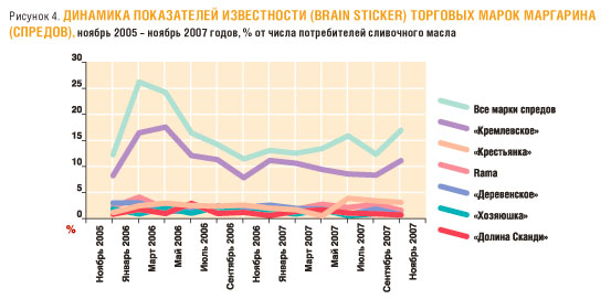 Безусловно, основной «вклад» в представление о спредах как о сливочном масле вносит торговая марка «Кремлевское», чей показатель BrainSticker несколько превышает 10% (рис. 4).