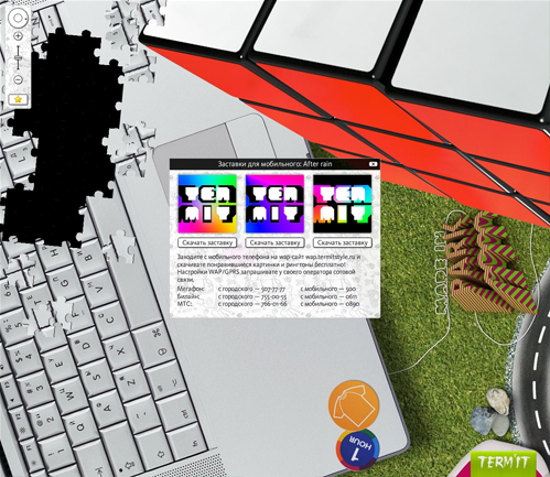Планета "Термит" начала жить. "Квест-сайт" для молодежи запущенВ рунете появился новый сайт, представляющий марку молодежной лайф-стайловой одежды "Термит". Ресурс построен по образу Google maps, и представляет собой "карту молодежного мира", в котором присутствуют современные подростковые идеалы: сноуборды, компьютеры, музыка, граффити, ролики, путешествия, игры. На фоне всего этого представлена коллекция марки "Термит". Создатели отмечают глубокую детализацию ресурса, на котором, помимо одежды и основного контента, присутствуют множество мелких деталей - вещей, территорий, странных существ и загадок. Также на карте сайта есть разделы с новостями компании, рингтоны, мультфильмы и другие развлекательные сервисы. Сайт предполагает возможность общения - здесь можно оставлять послания и рисовать рисунки. В сайте-квесте "Термит" легко заблудится, и чтобы этого не произошло, создатели ввели функцию, которая позволяет ставить метки при изучении этой планеты. Анатолий Зенков говорит о реализованном проекте: "Наш заказчик хотел получить официальный сайт марки одежды, на котором были бы представлены коллекции, новости, контакты и дилеры. Мы же подошли к вопросу более творчески и попытались создать целый мир".Состав творческой группы: Анатолий Зенков Саша Амельченко Алексей Сорокин ![]() ![]() ![]() ![]() ![]() |