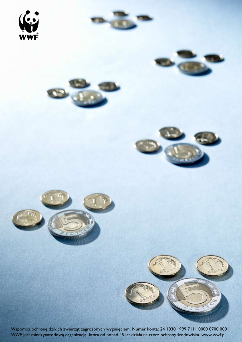 WWF просит нас о помощиКак утверждает польское рекламное агентство Euro RSCG Warsaw, создавшее этот рекламный плакат, любая, даже самая маленькая монетка может помочь общественной организации WWF (World Wild Fund) спасти диких животных от неминуемого исчезновения.Надпись: "Помоги спасти диких животных, подвергнутых опасности исчезновения." Агентство: Euro RSCG Warsaw, Польша Творческий директор: Jacek Szulecki Арт-директор / Фотограф: Dariusz Ma?ki?ski Копирайтер: Piotr Bara?ski |