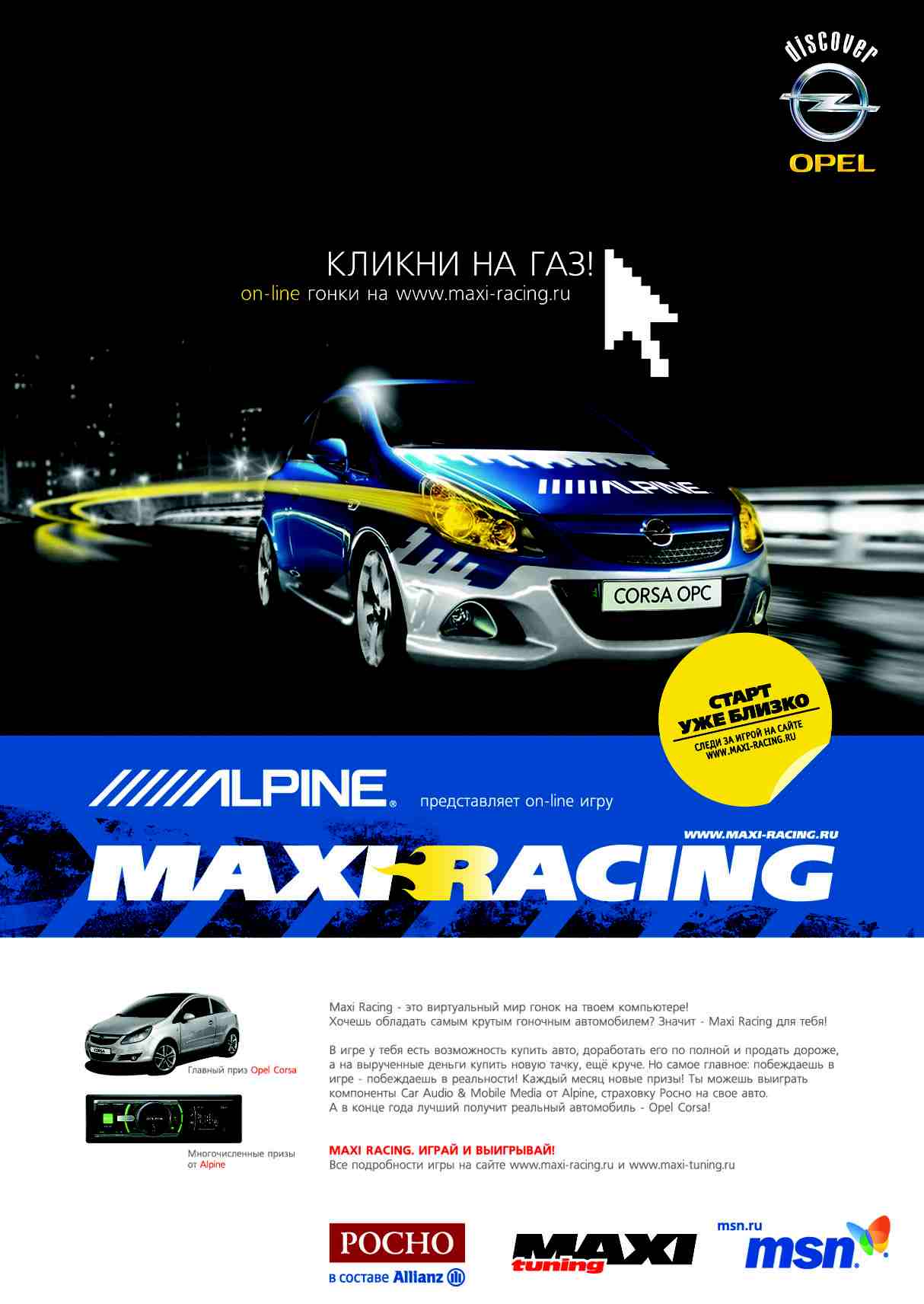 Прокатись на виртуальном Opel и купи настоящий. Компания представила on-line игру Maxi RacingМедиа-коммуникационное агентство Vizeum разместило Opel в on-line игре Maxi Racing, разработчиком которой является медиа-компания Gameland. Потребители могут испытать возможности автомобилей Opel серии OPC, участвуя в гонках и зарабатывая виртуальные деньги на сайте www.maxi-racing.ru. В поддержку Maxi Racing на порталах, игровых, спортивных и деловых сайтах размещены баннеры, а в соответствующих изданиях - рекламные модули.Автомобиль модификации ОРС - Opel Performance Center - оснащен системой IDS+, позволяющей изменять жесткость амортизаторов, а также кнопкой Sport, которая меняет настройки в работе рулевого управления и отзывчивость автомобиля на действия акселератором. Его концепция основана на образе "городского забияки" - вполне комфортабельного в спокойных режимах движения, но дерзкого в условиях скоростной трассы. В игре пользователь принимает участие в заездах на короткие дистанции. После регистрации, игрок в первую очередь отправляется в "Гараж", а затем в "Сервис", где его Opel "тюнингуют". Любой из участников игры может объявить заезд "дуэльного" или "эстафетного" типа, а так же определить его как "коммерческий" (обязательна "денежная" ставка) или "пробный". Важной чертой аудитории игры является ее желание покупать что-то инновационное и интересное. Участники игры готовы тратить деньги на свои увлечения, будь то машины, гонки или он-лайн игры. Разработчики проекта уверены: в азартный Интернет- проект будет вовлечено не меньше 100.000 постоянных игроков. По мнению разработчиков, участник виртуальных заездов, оставив руль виртуального авто, в самое ближайшее время отправится в автосалон за реальным автомобилем. Мария Косарева, менеджер по маркетинговым коммуникациям Opel: "Виртуальные миры - это тренд современной жизни. Maxi Racing - первые on-line гонки в реальном времени, в которых участники гоняют на спортивных моделях Opel - OPC. Мы уверенны, что, попробовав в виртуальном режиме модели OPC, участники заразятся этой страстью владельцев данных автомобилей и как только представится возможность, вступят в клуб фанатов - OPC Club, который живет очень активной гоночной жизнью!". Агентство Vizeum входит в состав коммуникационной группу Aegis Media/OKS. Vizeum специализируется на планировании и проведении интегрированных коммуникационных кампаний. Среди клиентов агентства Vizeum: General Motors, Эльдорадо, Heineken, Johnson & Johnson, "Лебедянский", JTI, ФК "УРАЛСИБ". По данным рейтинга Recma, в 2006 году российский офис агентства Vizeum внес наибольший вклад в развитие международной сети. |
