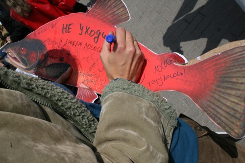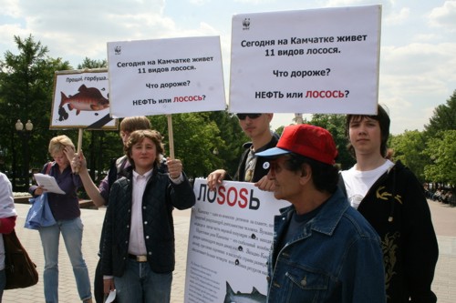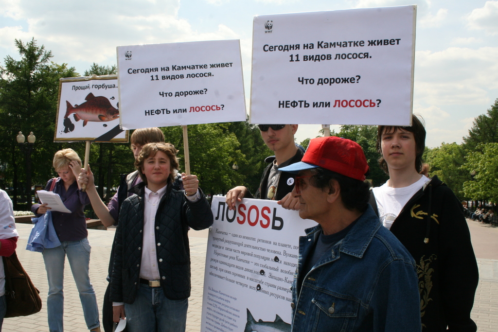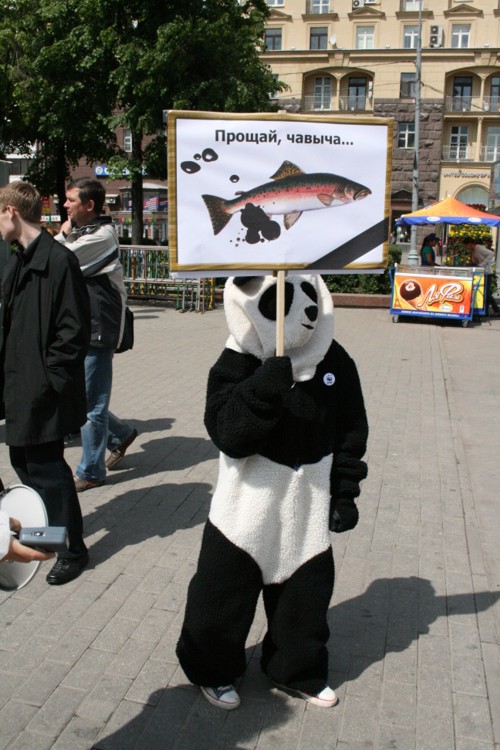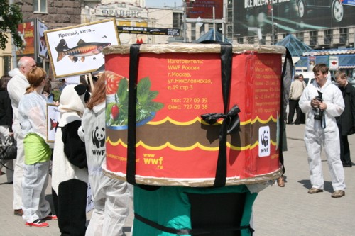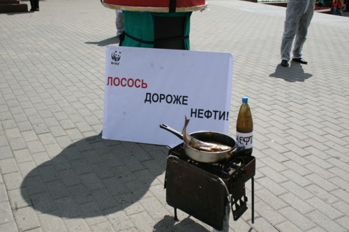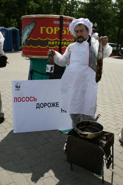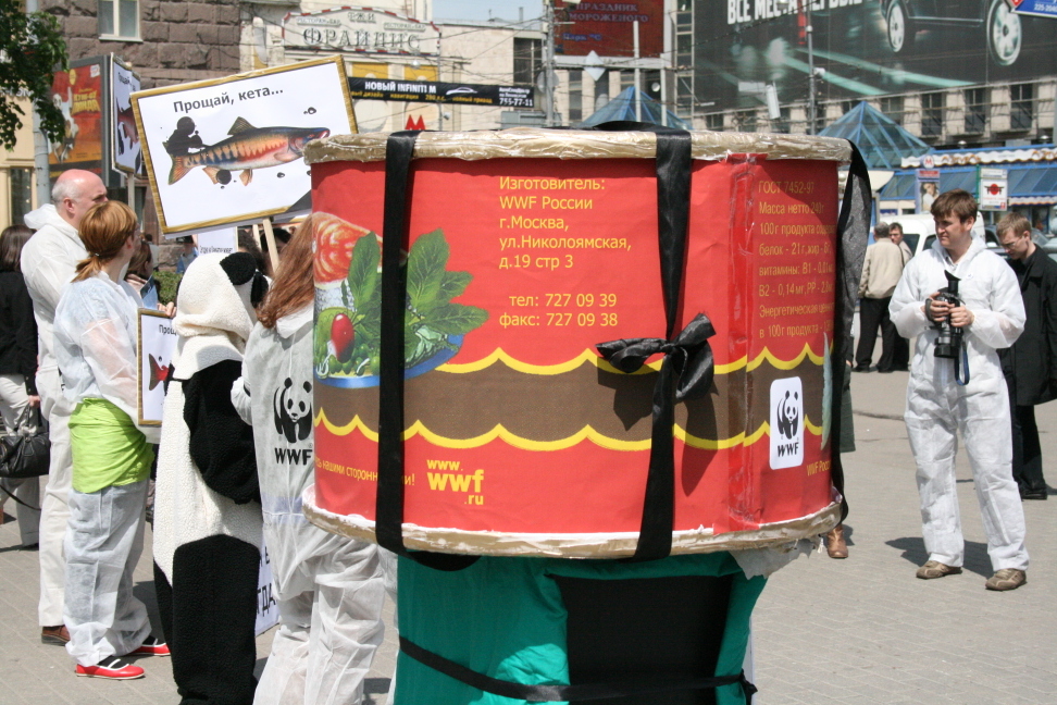WWF похоронил лосося. Акция призывает запретить нефтедобычу на КамчаткеВсемирный фонд дикой природы (WWF) провел акцию в защиту Камчатки от негативных последствий добычи нефти. Сторонники WWF прошли траурной процессией, имитирующей похороны лосося, который может исчезнуть с прилавков российских магазинов из-за нефтеразливов и разрушения мест его обитания. Участники акции несли огромный муляж консервной банки и лозунги с изображением лосося с траурной лентой.Сторонники WWF призывали окружающих поддержать акцию и собирали подписи под обращением к Правительству с требованием запретить нефтедобычу. Затем директор по природоохранной политике WWF Евгений Шварц пытался приготовить лосось на мангале, поливая рыбу нефтью. Так он показывал, как выглядит лосось в нефтяных разводах. В завершении акции активисты WWF запустили в небо лосося на черных воздушных шариках с надписью "Нефть", что символизировало, как нефть уносит жизнь рыбы. В рамках информационной кампании по защите Камчатки агентством "АДЕКВАТ" разработаны рекламный ролик для телевидения, макеты для прессы, Интернет-банер; в СМИ будут проведены мероприятия на региональном и федеральном уровнях. Акция должна привлечь внимание общественности к проблеме нефтедобычи на Камчатке. Освоение шельфа в сложных ледовых и сейсмических условиях может грозить экологической катастрофой: нефтеразливы и разрушение мест обитания могут стать причиной гибели лососей, крабов, морских птиц и нанести непоправимый вред уникальной природе Камчатки. |