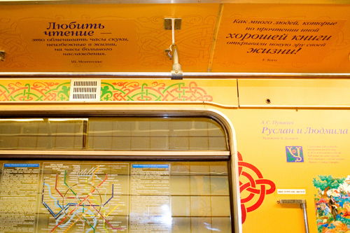 Особенности Метрополитена как наиболее посещаемого городского объекта дают уникальную возможность использовать его в качестве одной из наиболее эффективных рекламных площадок для пропаганды чтения и литературы. Идея создания этого необычного метропоезда заключается в проведении экскурса по произведениям детской литературы от былин и сказаний до произведений современных авторов и классиков мировой литературы.
