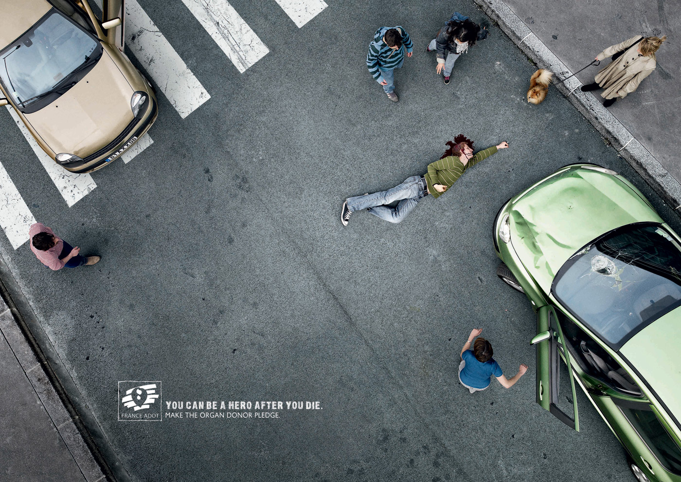 C France Adot мертвые становятся супергероямиАгентство CLM BBDO при помощи рекламной кампании для France Adot рассказывает обывателю о том, что если он согласиться на донорство органов после смерти, то вполне возможно его органы спасут чью-то жизнь и донор станет героем для этого человека и его близких людей.Вы можете стать героем после смерти Агентство: CLM BBDO, Boulogne Billancourt, France Креативные директора: Gilles Fichteberg, Jean-Fran?ois Sacco Арт директор: Lucie Vallotton Копирайтер: Julien Perrard Фотограф: C?dric Delsault |
