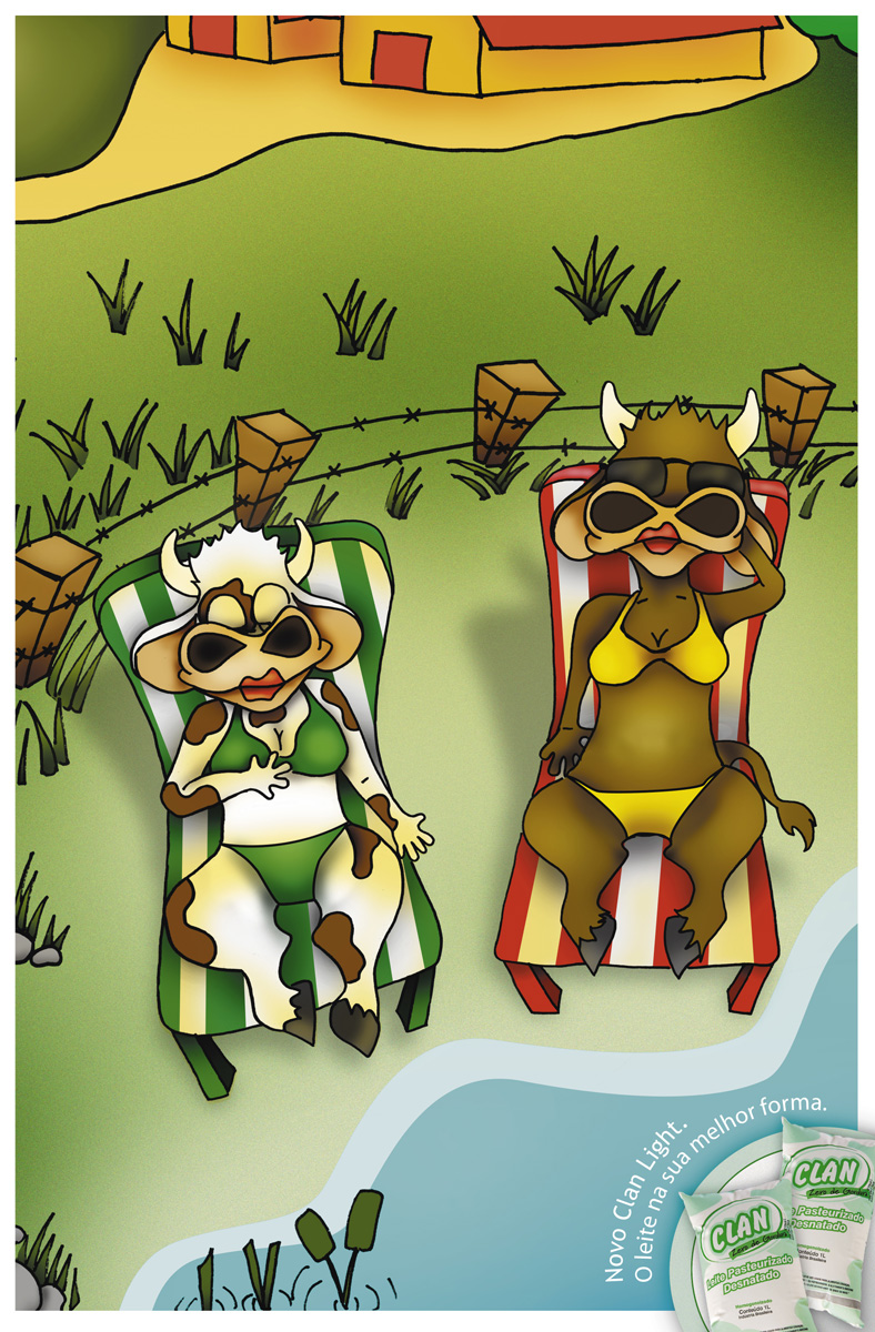 Коровы следят за своей фигурой в рекламе молока ClanМолоко Clan Light - это новый вид обезжиренного молока. Чтобы рассказать целевой аудитории, как именно получается такое молоко, бразильское рекламное агентство Dois.A показало коров, которые следят как за своей внешностью, так и за фигурой, занимаясь спортом и принимая солнечные ванны.Новое Clan Light. Молоко в своей лучшей форме Агентство: Dois.A, Натал, Бразилия Творческий директор: Henrique Abreu Арт-директор / Иллюстратор: Luiza Laffitte Копирайтер: Henrique Abreu, David Cantidio |