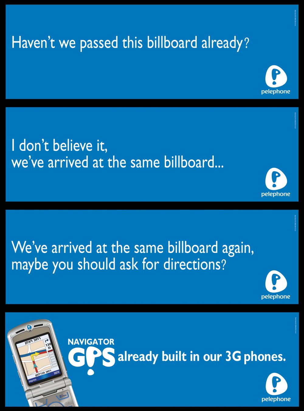 Кажется, мы это уже проходилиРекламное агентство BBR Saatchi & Saatchi разработало для израильского оператора мобильной связи Pelephone серию рекламных щитов. Целью этой кампании стало продвижение сотовых трубок нового поколения 3G с встроенным GPS-навигатором. Рекламные щиты, размещенные друг за другом, должны наводить проезжающих мимо людей на мысль о том, что они заблудились, чего бы совершенно точно с ними не случилось, будь у них телефон третьего поколения.Мы уже проезжали этот щит? Я просто не верб в это. Мы приехали к тому же щиту… "Мы снова приехали к этому щиту, может нам стоить спросить у кого-нибудь дорогу?" "GPS-навигатор уже встроен в наши 3G телефоны." Агентство: BBR Saatchi & Saatchi, Израиль Главный творческий директор: David Edelstein Копирайтер: Dalit Orbach Арт-директор: Kfir Reuveni Главный аккаунт-менеджер: Idit Zuckerman, Nitzan Markovich |