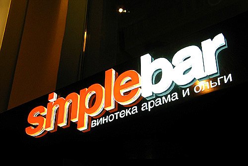 Как сообщается в пресс-релизе, Simplebar - это совместный проект известного ресторатора Арама Мнацаканова и компании Simple, реализованный в тихом центре Петербурга. С самого начала клиентом высказывалось пожелание включить в проектируемый логотип товарный знак Simple. Так возникло название «Simplebar. Винотека Арама и Ольги».