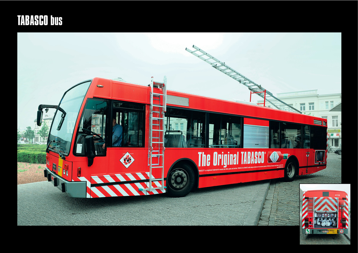 Автобус едет на пожарРаньше красный перечный соус Tabasco рекламировали с помощью отапливаемых автобусных остановок , а теперь перешли и на сами автобусы. Бельгийское рекламное агентство Duval Guillaume создало автобус, который очень напоминает пожарную машину что не удивительно, ведь этот общественный транспорт едет тушить пожар, вызванный жгучим соусом Tabasco.Агентство: Duval Guillaume, Брюссель, Бельгия Творческий директор: Katrien Bottez, Peter Ampe Творческая группа: Davy Caluwaerts, Kristof Vanderbeke |