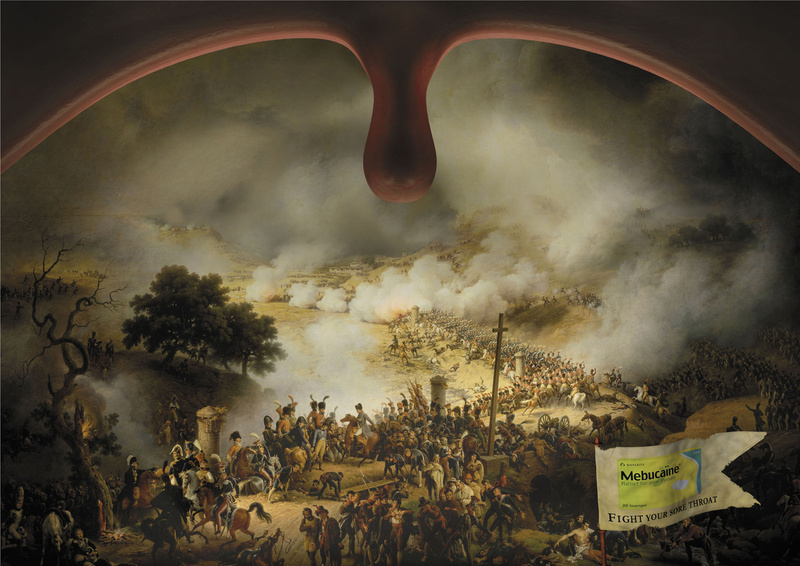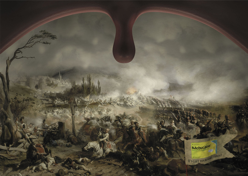 Mebucaine поможет, когда в горле идет войнаШвейцарское агентство Saatchi & Saatchi Simko Geneva решило сравнить больное горло с полем битвы, создавая эту рекламную кампанию для лекарственного препарата Mebucaine. Это средство, по мнению агентства, поможет вам одержать победу над болью в горле.Битва с больным горлом. Агентство: Saatchi & Saatchi Simko Geneva Главный творческий директор: John Pallant Творческий директор: Olivier Girard Арт-директор: Jean-Francis Fournon Копирайтер: Gabriel Mauron, Fraser Grant |