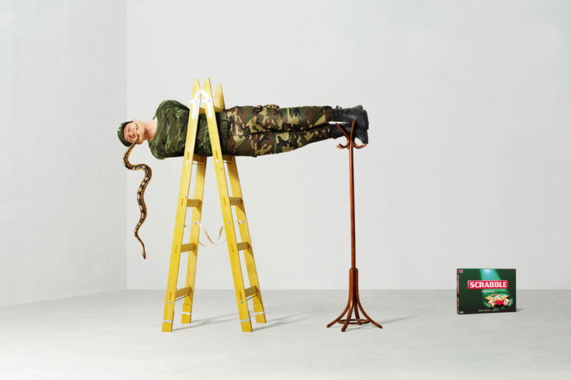 В игре Scrabble солдат может пересечься даже со змеейScrabble - это настольная игра, цель которой - составить из имеющихся букв как можно больше слов по принципу кроссворда, причем выигрывает тот, кто наберет больше очков. В этой рекламной кампании венгерское агентство Ogilvy Budapest показало сам принцип кроссворда. Стоит заметить, что это не первый опыт работы агентства над рекламной игры Scrabble .Агентство: Ogilvy Budapest, Венгрия Творческая группа: G?bor Spielmann, Bruno Almeida Фотограф: Pal Nanasi |