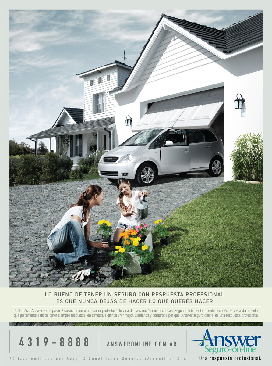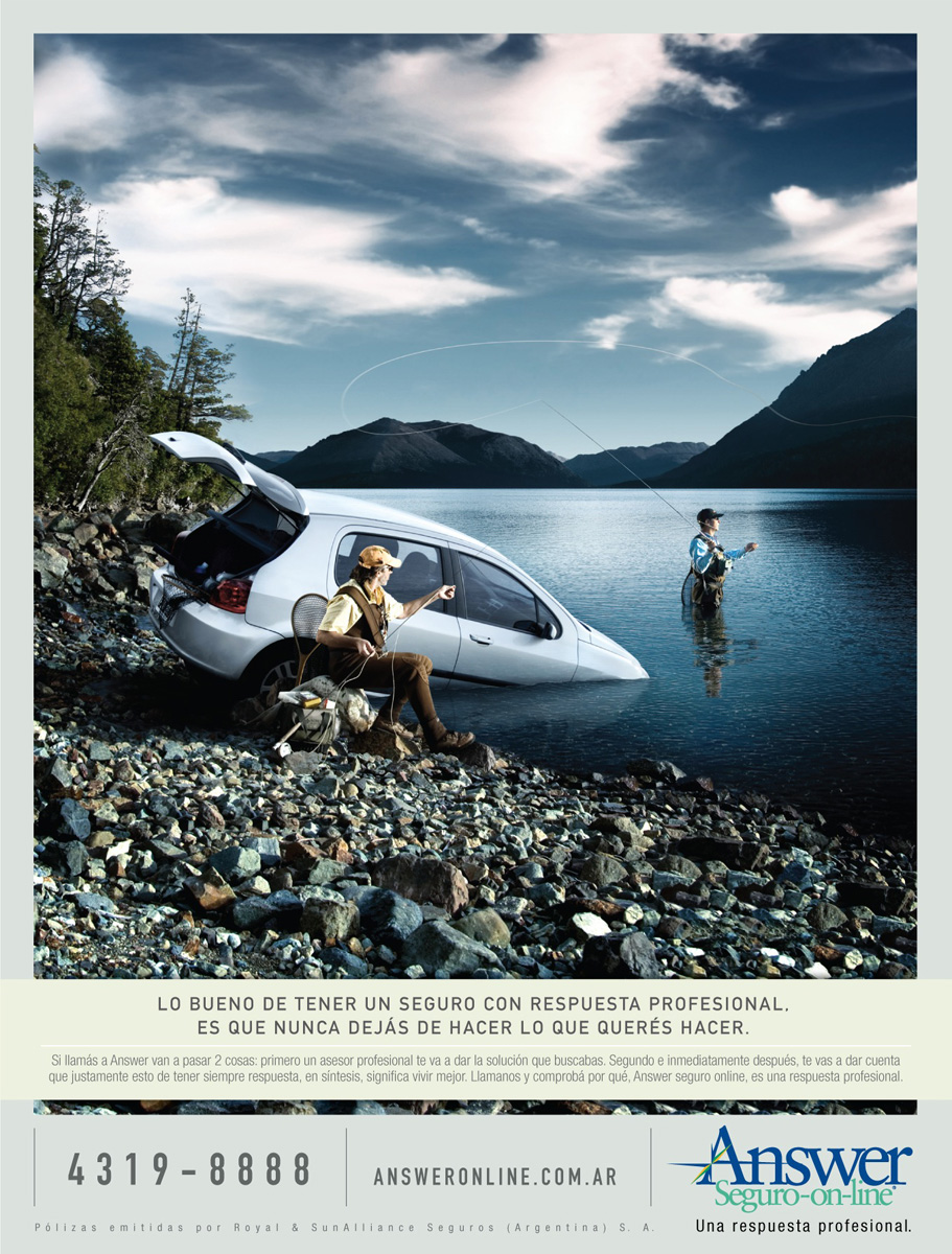 Answer: не обращайте внимание на неприятностиБлагодаря онлайн страховому сервису Answer не придется прерывать свое любимое занятие, даже если с автомобилем произошло непредвиденное.Хорошо страховаться в Answer, ведь вам никогда не придется прекратить делать то, что вы хотите Агентство: Dialogo Publicidad, Аргентина Творческий директор: Mariano Haefeli, Daniel Alfieri Арт-директор: Mariano Haefeli Копирайтер: Daniel Alfieri Фотограф: StudioWallace, fotografias Продюсер: Juje Пост-производство: DCH Studio, Diego Chiliano |