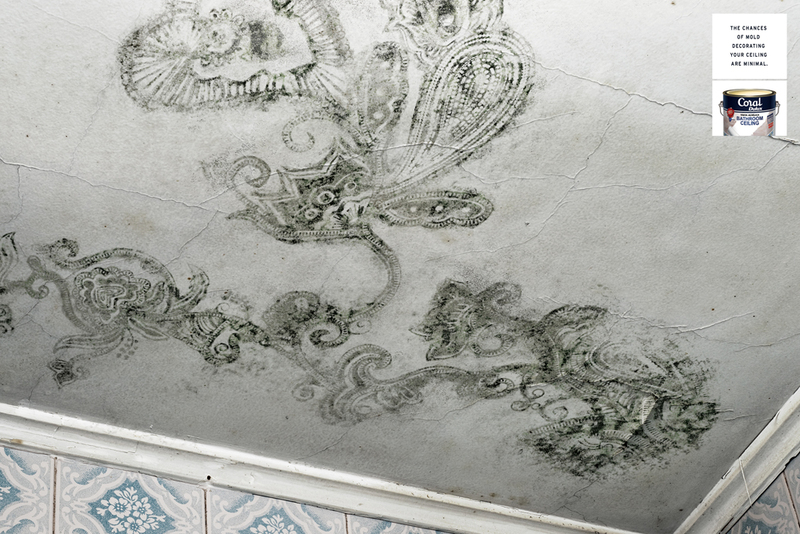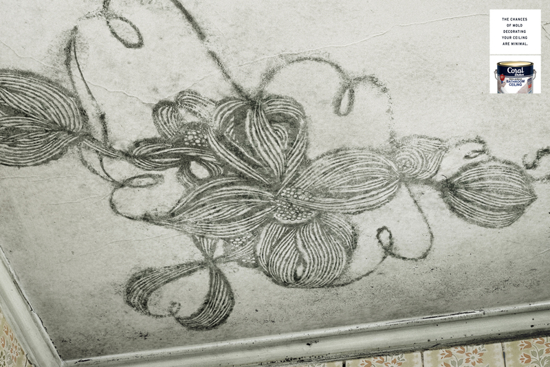 Заплесневелые художестваЕсли вы столкнулись с проблемой образования плесени на потолке вашей кухни или ванной комнаты, то наилучшем решением, как нам рассказывает рекламное агентство Leo Burnett Brasil, будет использование специальных красок Coral, которые предотвращают появление на окрашенной поверхности плесени и грибка.Шансы, что плесень украсит ваш потолок, минимальны. Агентство: Leo Burnett Brasil Творческий директор: Ruy Lindenberg Арт-директор: Andre Gola Копирайтер: Carla Cancellara |