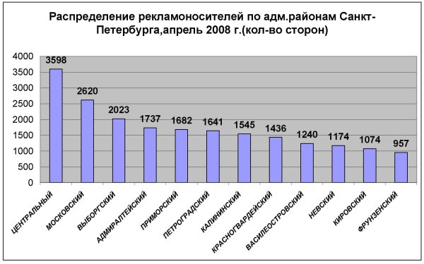 Самыми богатыми на рекламные конструкции различных форматов остаются Центральный район (3 598 поверхностей), Московский (2620) и Выборгский (2023).