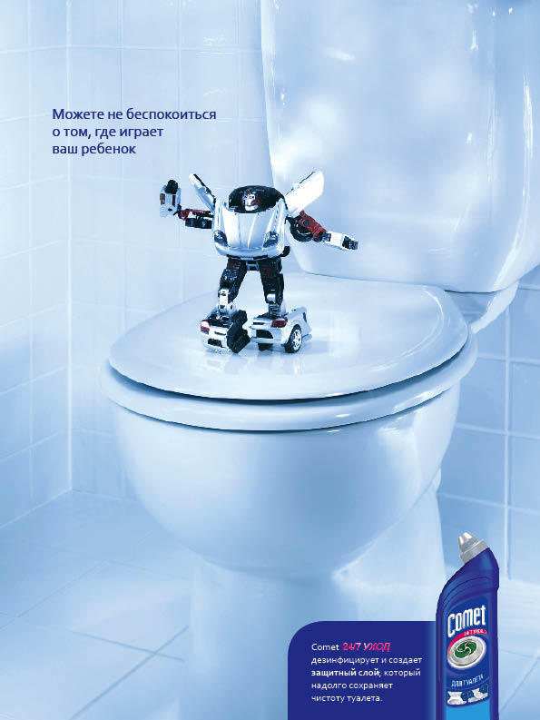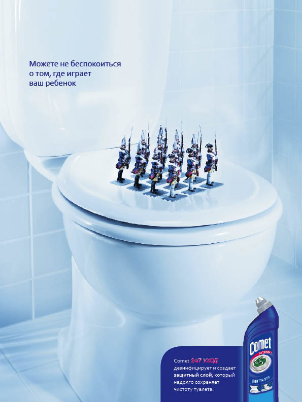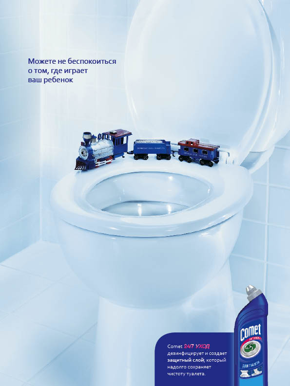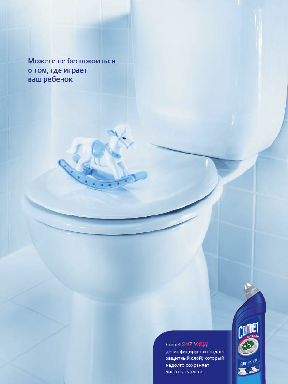 Домохозяйкам расскажут о расширении линейки Comet со страниц женских журналовНадавно Sostav.ru писал о выпуске нового продукта - Comet Уход 24х7. Теперь же рекламное агентство Grey Moscow разработало Non-TV кампанию в рамках глобального запуска новинки Procter & Gamble.Grey Moscow и P&G лаконично сообщают молодым мамам, что Comet 24/7 Уход дезинфицирует и сохраняет чистоту туалета. Можете не беспокоиться о том, где играет Ваш ребенок. Рекламная кампания, стартовала 1 июня и включает в себя материалы в женских журналах на территории РФ, метро-стикеры в Москве и сити-форматы (автобусные остановки) в городах-миллионниках. Состав творческой группы Grey Moscow: Креативный директор: Майк Гибсон Арт-директор: Лана Катаева Копирайтер: Ильдар Агапов Эккаунт-директор: Надежда Мирошниченко Эккаунт-супервайзер: Татьяна Валуева |