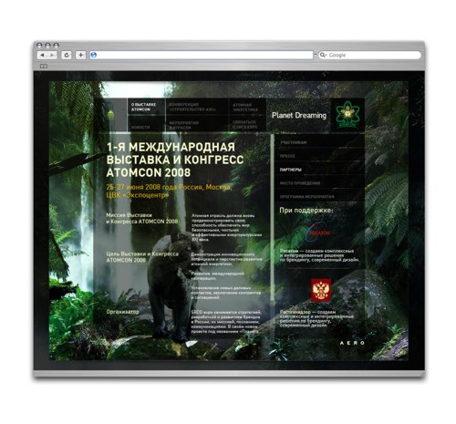 Агентство Aero разработало сайт для 1-ого международного форума Atomcon 2008Запуск www.atomcon.ru состоялся 19 июня. Atomcon 2008 проводится под патронажем ГК "Росатом" в рамках проекта Planet Dreaming, призванного изменить негативное отношение общественности к АЭС и поднять на иной уровень понимание перспектив атомной энергетики не только для участников рынка, но и для простых людей.Сайт atomcon.ru содержит информацию о форуме, новости атомно-энергетической отрасли, данные о мировых событиях в области энергетики, историю российской атомной энергетики и другую информацию. Форум пройдет 25-27 июня в московском Экспоцентре. Заказчиком Aero выступила компания SBCD Expo. |
