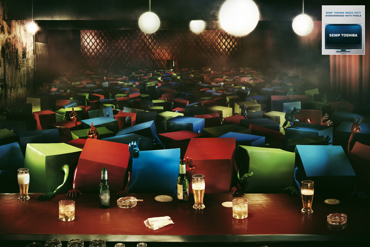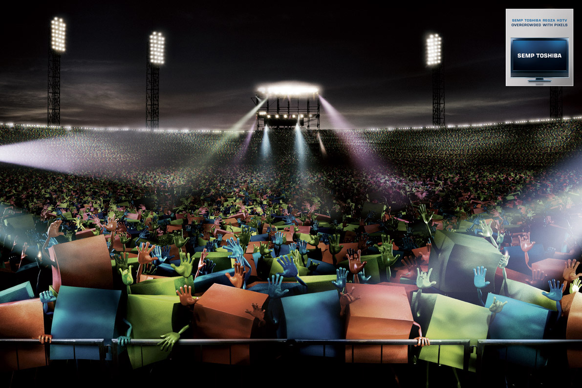 Телевизор Semp Toshiba Regza переполнен пикселямиТелевизор Semp Toshiba Regza HDTV настолько "переполнен" пикселями, что его можно сравнить с футбольным стадионом во время решающего матча или с пивным баром в пятницу вечером.Semp Toshiba Regza HDTV. Переполнен пикселями. Агентство: Talent, Сан-Паулу, Бразилия Творческий директор: Jo?o Livi, Leo Macias Арт-директор: Fabio Rodrigues Копирайтер: Guigo Oliva Иллюстратор: Paulo Dias Фотограф: Claudio Lacerda Ретушь: Boreal |