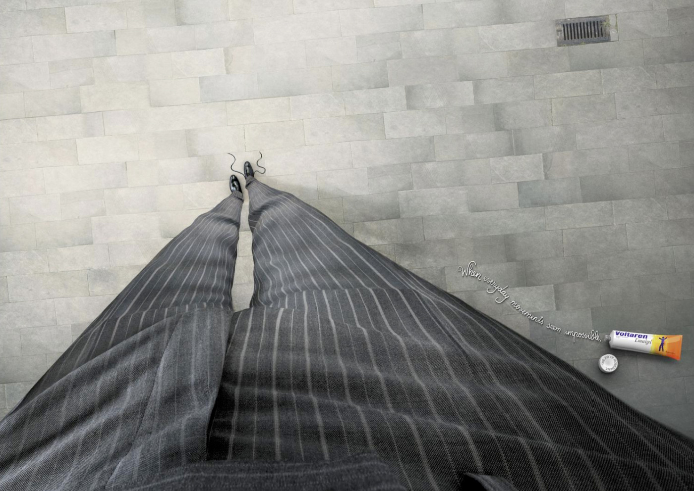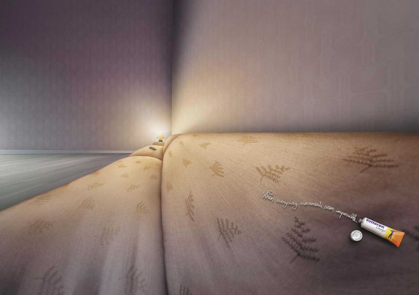 Voltaren Emulgel помогает, если обычные движения кажутся невозможнымиНесколькими представительствами сети агентств Saatchi & Saatchi была разработана эта совместная рекламная кампания для геля Voltaren Emulgel, применяемого при воспалениях, вызванных травмами или ревматическими заболеваниями. На принтах показаны ситуации, когда обычные повседневные движения невозможно выполнить из-за боли.Когда ежедневные движения кажутся невозможными Состав творческой группы
