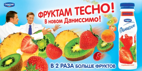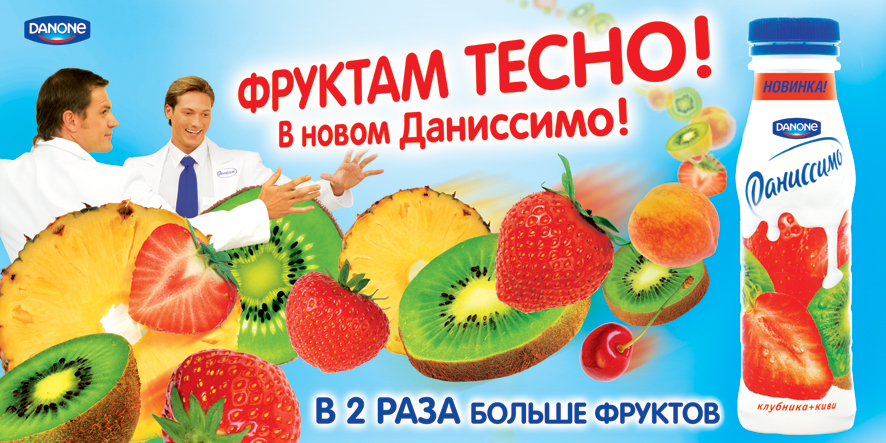 Закрой глаза. Открой рот. Пей "Даниссимо"Young&Rubicam сделал для бренда "Даниссимо" новый рекламный ролик и макеты для размещения в наружной рекламе. Слоган - "Фруктам тесно!".Состав творческой группы: Клиент - Danone Senior Brand Manager: Анна Михайлова Brand Manager: Марина Зинакова Агентство - Young&Rubicam Creative Group Head: Александр Перминов Copywriter: Александр Ибрагимов Art-director: Юлия Полозкова Account Director: Екатерина Журавлева Senior Account Manager: Екатерина Ковалева Producer: Ирина Войнова Студия - AC Production Producer : Максим Сенатор Director : Тигран Бежанов DOP: Анастасий Михайлов