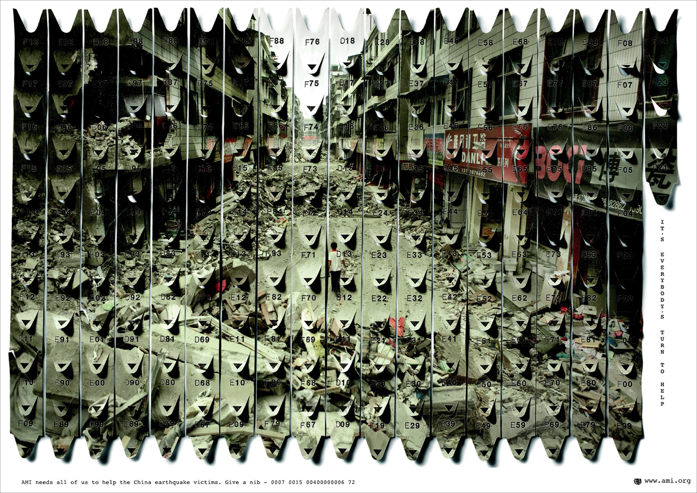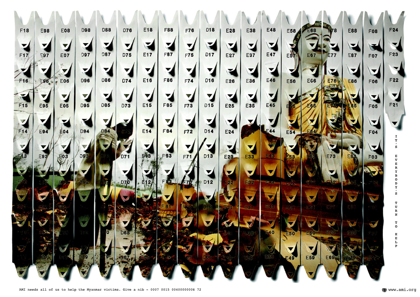 Очередь помогатьНаступает такой момент, когда даже самая маленькая помощь бывает как нельзя кстати. С помощью рекламной кампании в исполнении Y&R Portugal AMI призывает людей внести свой посильный вклад в общее дело и помочь жертвам землетрясения в Мьянме.Агентство: Y&R Portugal Креативные директора: Pedro Ferreira, Judite Mota Арт директор: Pedro Ferreira Копирайтер: Judite Mota Фотограф: Image Tap / Lusa Пост продакшн: Andy Wagner |