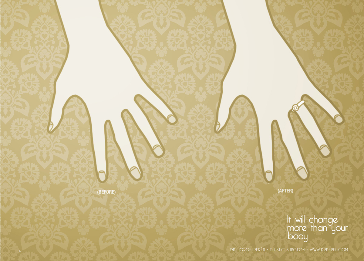 Переход от теории Камасутры к практике лежит через пластическую хирургиюРекламная кампания клиники пластической хирургии Dr. Perea от агентства McCann Erickson утверждает, что воспользовавшись услугами этой клиники, женщина не только изменит свой внешний вид, но и кардинально изменит в лучшую сторону свою жизнь. Выйдет замуж, станет привлекательна в сексуальном плане для мужчин.Изменит больше чем ваше тело Агентство: McCann Erickson, Bogota, Colombia Креативный директор: Samuel Estrada DGC Арт директора: Reini Farias, Eduardo Angel Копирайтер: Eduardo Angel |
