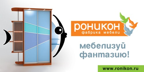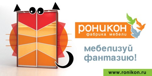 Основная задача - отразить яркость решений и вариативность возможностей обустройства домашнего интерьера, предлагаемых фабрикой «Роникон». Акцент при размещении предполагалось делать на наружную рекламу.