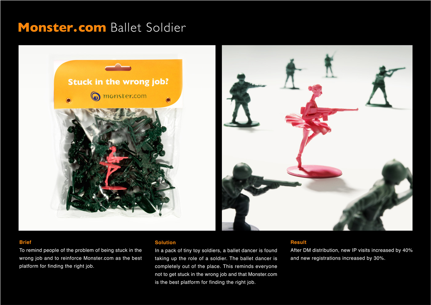 Monster.com - ресурс для тех, кто не на своем местеКто сказал, что найти работу тяжело? На самом деле, тяжело найти правильную подходящую работу, заявляет гонконгское рекламное агентство JWT HK. Если с вами происходит то же, что и с героями этих принтов, помочь может только Monster.com.Застрял на неправильной работе? Агентство: JWT HK, Гонконг Главный творческий директор: Steven Lee Творческий директор: Kwong Chi Kit/Barbara Fu Копирайтер: Cheung Yee Mui/Steven Lee Арт-директор: Arthur Tse/Ciff Luk Фотограф: Tim Lau Главный аккаунт-менеджер: Macy Ng Другое: Colin Chan |