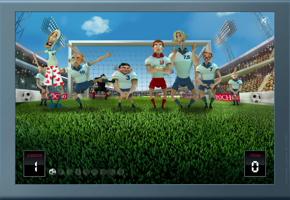 "Забей гол!" - интернет игра от РОСНОДля продвижения бренда РОСНО в агентстве GRAPE разработали анимационную Интернет-игру "Забей гол!".За первые три дня сайт посетило более 70 тысяч человек. Целевая аудитория кампании это мужчины и женщины 25-55 лет с доходом средним и выше, ориентированные на западный образ жизни и готовые заплатить за продукт чуть дороже, если они уверены, что этот продукт качественный. Действие игры разворачивается на "ревущем" стадионе. Каждый футбольный игрок, стоящий в стенке перед пользователем, уникален. Согласно первоначальной задумке игра должна была быть выполнена в формате 2D , однако, в результате, она приобрела объём, представ перед конечным пользователем в 3D формате и вместив в себя около 60 анимаций. |