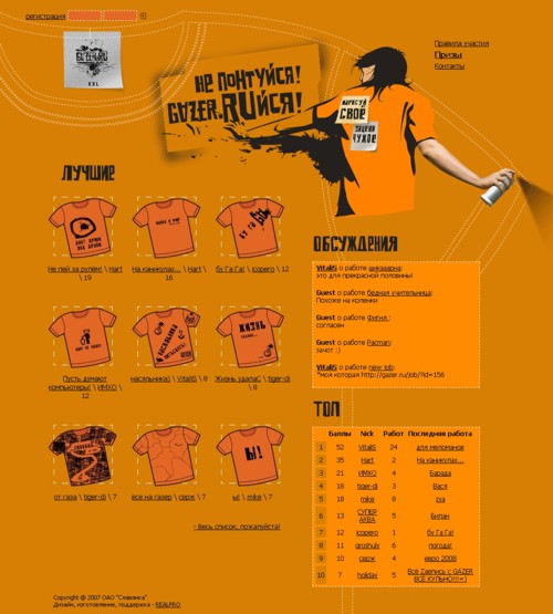 Аудитория проявит креативность с помощью напитка GazerREALPRO разработала и запустила промо-сайт для торговой марки GAZER и банерную он-лайн поддержку. Цель проекта - дать возможность аудитории проявить свою креативность и получить вознаграждение от GAZER.Состав творческой группы REALPRO: Директор - Алексей Царегородцев. Креативный директор - Игорь Ярыгин. Стратегическое планирование - Наталья Сикорская. Руководитель проекта - Антон Поцелуйко Дизайн - Игорь Ярыгин, Сергей Орлов, Павел Пермяков. Программное обеспечение - Сергей Жданкин, Павел Михайлов. |