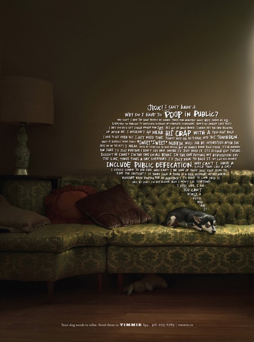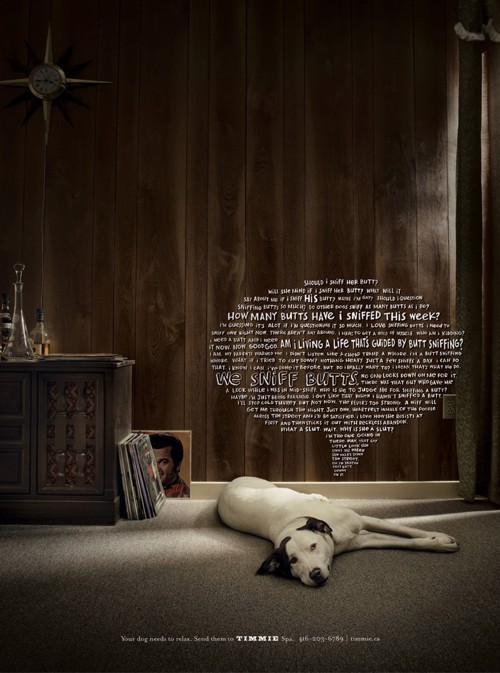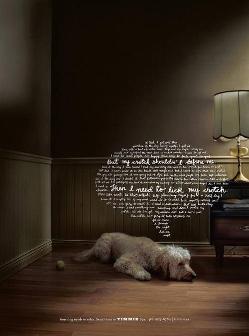 Насущные проблемы собак в рекламе spa салона TimmieЕсли вы считаете, что жизнь рядовой домашней собаки проста и безоблачна, то вы сильно ошибаетесь. РА DDB Canada и Timmie утверждают, что собака испытывает огромный стресс оттого, что постоянно лижет себя, или нюхает чьи-то "орешки". Но не все потеряно, благодаря spa салону для собак Timmie ваш питомец сможет отвлечься от тягостных раздумий и расслабиться.Агентство: DDB Canada, Toronto, Canada Креативный директор: Andrew Simon Арт директор: Paul Riss Копирайтер: Matt Antonello Иллюстратор: Rachel Riordan Фотограф: Frank Hoedl |