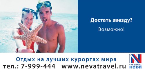 Ожидания от «Невы»Агентство «Европа Адвертайзинг» разработало рекламную кампанию для петербургской турфирмы «Нева». Кампания началась в апреле и рассчитана на пол года. Как рассказали AdLife.spb.ru в агентстве, каждый слоган, визуальный ряд и информационный блок иллюстрируют определенный туристический продукт компании – экскурсионные туры, индивидуальные туры, детский отдых, отдых на море и другое. «При создании идеи мы руководствовались тем, что у людей, покупающих туристические путевки, довольно высокие ожидания от предполагаемой поездки. Покупая их, они покупают некий образ, мечту, праздник. Исходя из этого, в линии креативных макетов для «Невы» обычные вещи приобретают иную окраску. В макетах мы показываем, что любые, пусть даже самые смелые идеи, самые необычные ожидания, могут стать реальностью, они возможны», - прокомментировал Тимофей Студилин, директор по работе с клиентами «Европа Адвертайзинг». Например, слоган: «Достать звезду? Возможно!» – игра слов, проиллюстрированная визуальным рядом (звезда – морская), говорит потребителю, что мечта достижима.![]() ![]() ![]() ![]() ![]() ![]() В сентябре запланирована смена сезонной тематики – летние виды туров будут заменены на зимние. В качестве медийных инструментов используются наружная реклама, реклама в метро и на общественном транспорте, радио реклама, реклама в прессе. adlife.spb.ru |
