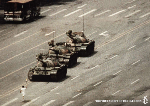 Олимпийские игры традиционно выступают платформой для борьбы за права человека и свободу слова. В условиях притеснения Тибета и авторитарного политического режима в Китае полемика вокруг Пекинской Олимпиады планирует быть наиболее жаркой. В спотах организации Amnesty International олимпийский огонь зажигается от электрошокера, которым пытают беззащитных людей. А в серии рекламных принтов правозащитная организация показывает спортсменов как агрессоров.