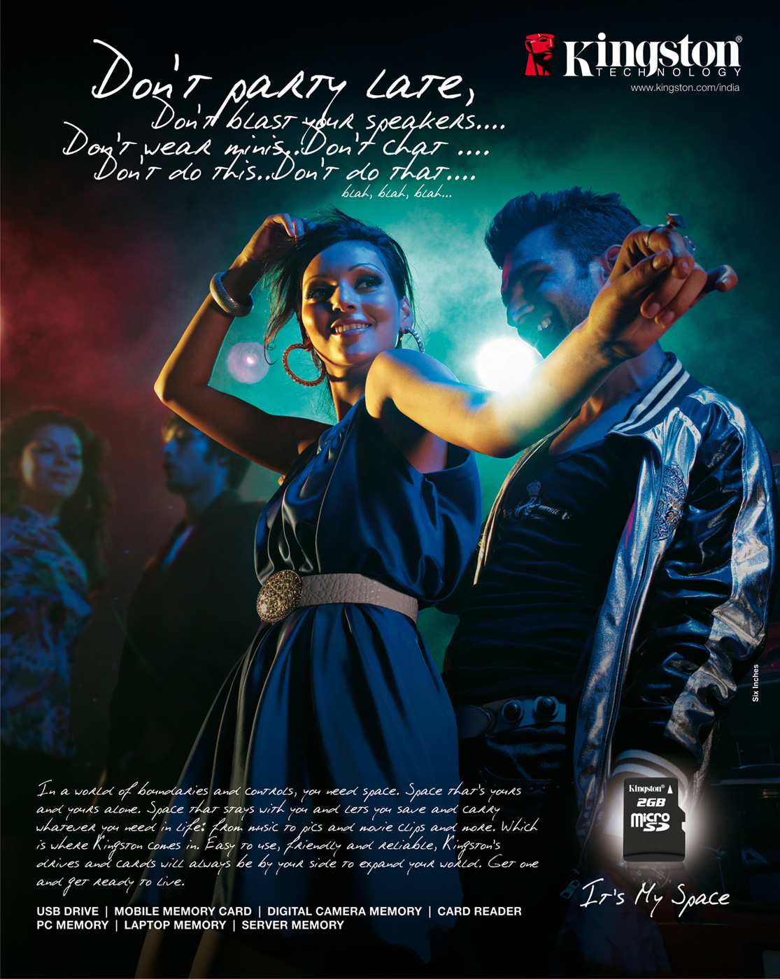 Kingston освобождает от запретов"В мире, наполненном запретами и контролем, вам нужно место, которое ваше и только ваше, в котором вы сможете хранить все, что необходимо в жизни. Музыка, клипы, фотографии и т.д. Именно в тот момент, когда вы столкнулись с подобной проблемой, на помощь приходит компания Kingston, кардридеры и карточки памяти от Kingston всегда будут на вашей стороне и дадут вам удивительную возможность расширить свой мир", - считают РА Six Inches и Kingston.Рекламная кампания Kingston в качестве ЦА рассматривает людей в возрасте до 25 лет и позиционирует продукцию Kingston как средство, с помощью которого возможно сбросить оковы социума и почувствовать себя действительно свободным. Агентство: Six Inches, Mumbai, India Креативные директора: Pravin Shah, Sanjay S Арт директора: Pravin Shah, Rutul Mistry Копирайтеры: Sanjay S, Umesh Mishra Фотограф: Abitabh Kame |