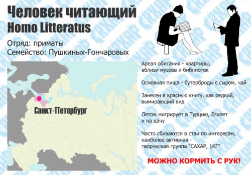 "Сахар, 1кг" обратил внимание на чтениеТворческая группа «Сахар, 1 кг», специализирующаяся на написании сценариев для телевизионных программ и разработке новых телевизионных форматов, а также альтернативном маркетинге, провела 5 и 6 июля акцию «Человек читающий» совместно с петербургским зоопарком. Как рассказали AdLife.spb.ru организаторы, основной целью социальной акции было привлечь внимание горожан к проблеме падения интереса к чтению. «Сегодня даже в Петербурге, культурной столице России, встретить человека с книгой практически так же сложно, как медведя с балалайкой, - утверждают представители творческой группы. - Поэтому мы «нашли» практически последние оставшиеся особи вымирающего вида человека читающего (homo litteratus) и обратились в петербургский зоопарк с просьбой взять под защиту редкий вид социального животного. Администрация зоопарка пошла навстречу петербургской интеллигенции, в результате чего в минувшие выходные посетители зоопарка смогли увидеть четырёх читающих людей за прутьями клетки».![]() В течение двух дней в клетке и около неё происходили публичные чтения произведений Хармса, Аверченко, Тэффи, Достоевского, Блока и многих других авторов, а также исполнялись вокально-инструментальные импровизации на тему известных литературных произведений. Наиболее активными участниками акции стали дети, которые рассказывали наизусть стихотворения Пушкина, Некрасова, Агнии Барто, а, случалось, что и собственного сочинения. «Взрослые же подкармливали сидящих в клетке сценаристов бананами, печеньем, домашней выпечкой, Вознесенским, Тютчевым и Некрасовым в собственном исполнении, а также обещали обязательно купить на пути домой какую-нибудь новую книгу в домашнюю библиотеку», - рассказали организаторы. ![]() Все участники конкурсов получали подарки – книги, буклеты о животных, содержащихся в зоопарке, значки и календари. Объем потока Ленинградского зоопарка в выходные дни составляет около восьми тысяч человек, за время проведения акции возле клетки с читающим человеком побывали не только жители Петербурга, но и других российских городов. Организаторы акции полагают, что привлечь внимание людей к количественному и качественному спаду того, что они читают, особенно в молодежной среде, легче, используя нестандартные и оригинальные методы, это не только фокусирует внимание общественности на проблеме, но и наглядно демонстрирует, что можно развлекаться с пользой для ума. ![]() Однако социальные мотивы в проведении акции были не единственными. Она вызвала определенный резонанс в СМИ, что позволило творческой группе «Сахар, 1 кг» заявить о себе, в том числе и как о компании, занимающейся альтернативным маркетингом. «Наша акция не только вызвала резонанс общественного мнения по отношению к актуальной проблеме, но и продемонстрировала эффективность такого нового, развивающегося направления в рекламе и pr, как альтернативный маркетинг в условиях современного мегаполиса», - говорят организаторы. Современное информационное общество, создавшее целую сеть альтернативных источников информации, крупнейшим из которых, безусловно, является Интернет, порождает целый пласт потребителей (в основном среди молодежи и людей до 30 лет), вращающихся в информационном поле, недоступном для прессы, телевидения и прочих, ставшиx уже привычны