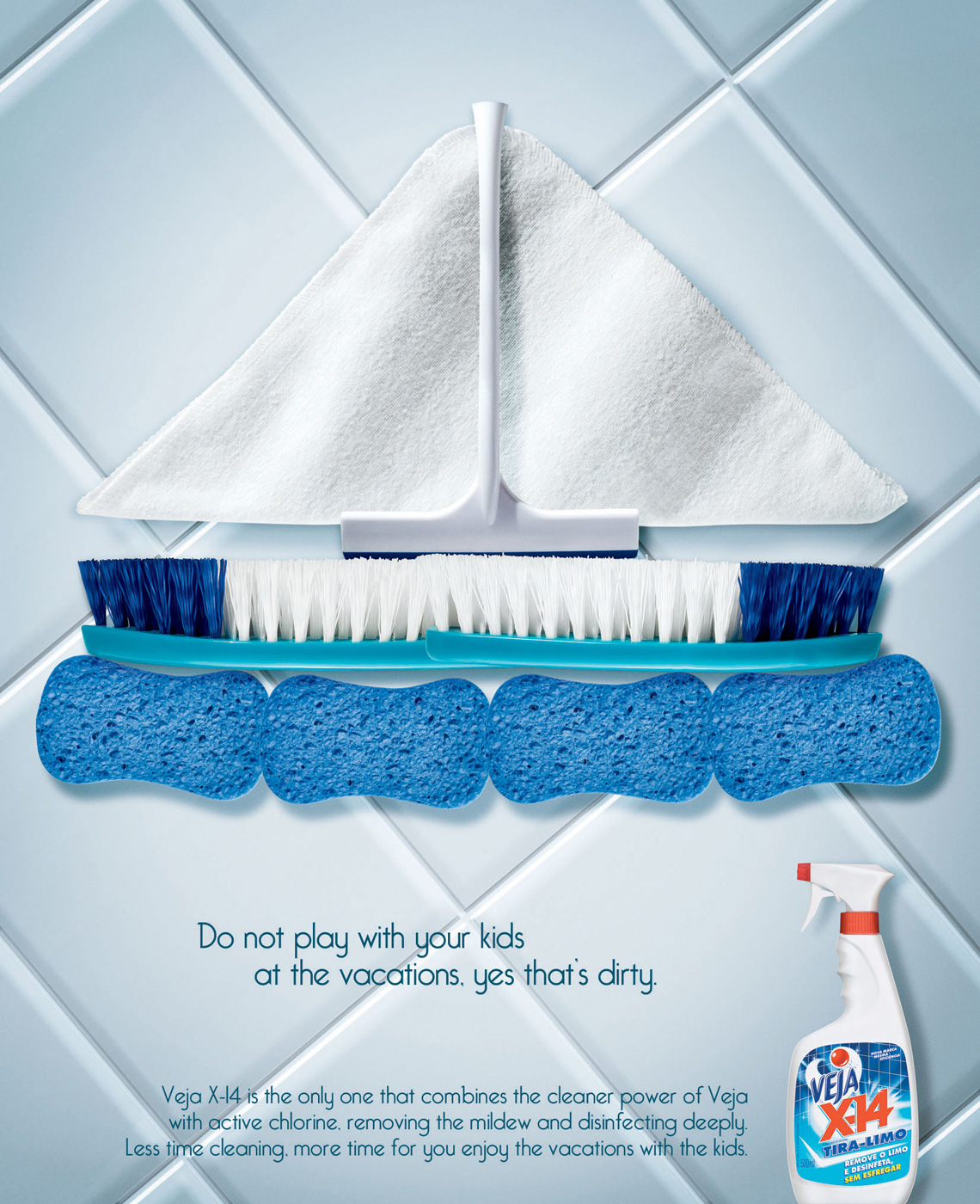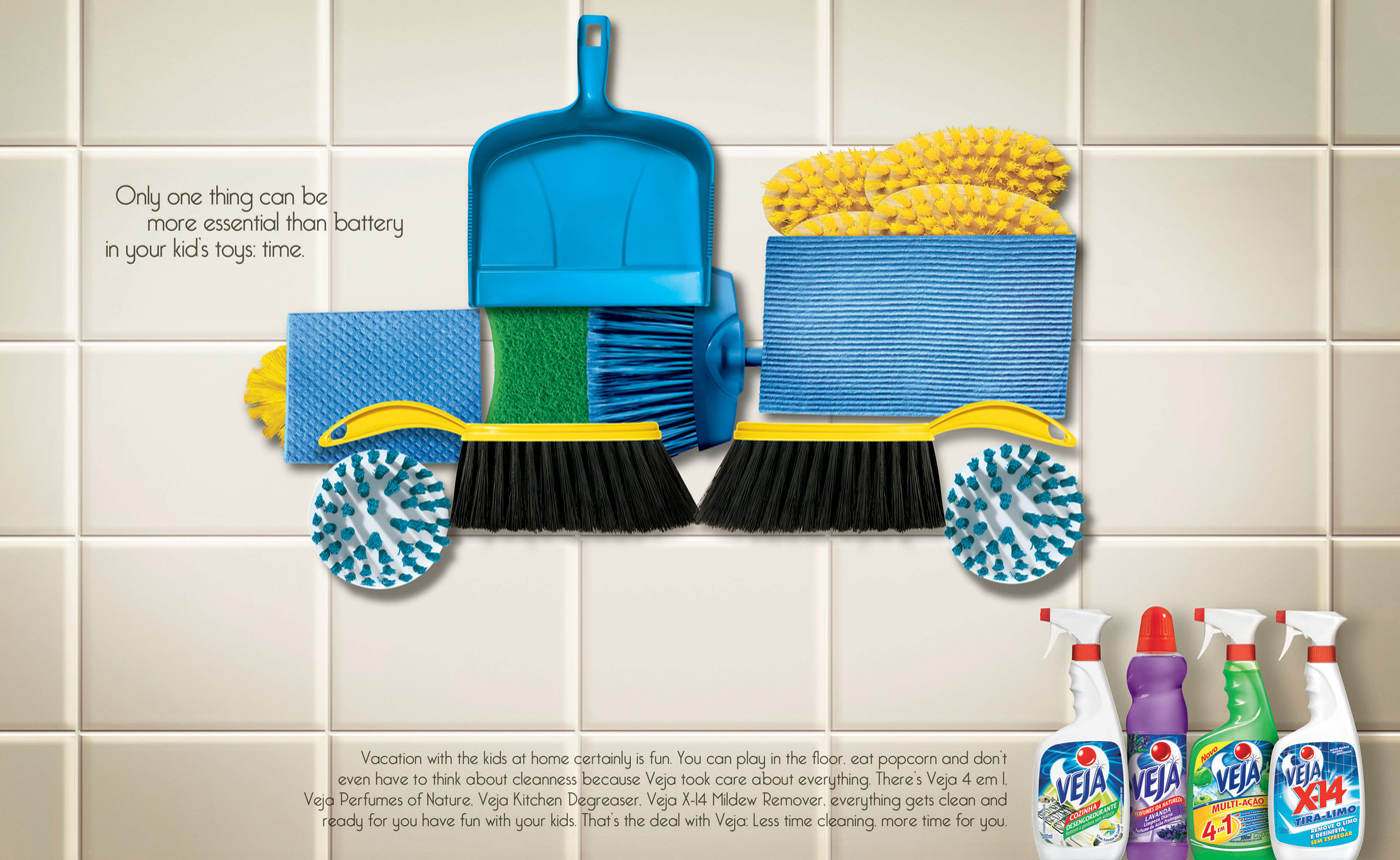Veja - пришла пора забыть о грязи и плохом запахе в вашем домеВсем прекрасно известно, что отпуск, проведенный дома с детьми, наполнен радостью и весельем. Вы можете валяться по полу, дурачиться, кушать попкорн и не волноваться за чистоту в доме. Почему? Потому что чистящие средства Veja позаботились о чистоте и уюте вашего дома. Veja - тратьте меньше времени на уборку, больше на себя.Агентство: Euro RSCG, Sio Paulo, Brazil Креативные директора: Rodrigo Corbari, Carlos Castelo Арт директор: Adriana Guimaries Копирайтер: Paula Chande Фотограф: Geison Genga |