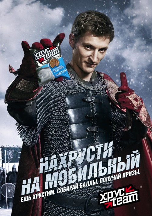 Воля к победе. Ролик промо-акции ХрусteamВ рамках интегрированной кампании в поддержку бренда Хрусteam 7 июля в эфир национальных телеканалов вышел новый ролик "Нахрусти на мобильный". Креативную концепцию ролика разработало агентство BBDO Moscow.Как и имиджевый, он продолжает историю о русской дружине и ее воеводе в исполнении Павла Воли. В новой истории битва уже окончена и Павел Воля раздает награды победителям. Промо кампания поддерживается на ТВ, в местах продаж и в интернете промо-сайтом www.hrusteam.ru. В рамках акции "Нахрусти на мобильный" потребители могут собирать баллы, при помощи регистрации уникальных кодов из пачек через СМС или на промо-сайте. За накопленные баллы можно получить различные призы, в том числе: деньги на счет мобильного телефона, мобильный телефон, а так же коммуникатор. Состав творческой группы Владелец бренда: Frito Lay Бренд-менеджер: Анна Баум Бренд-менеджер: Дарья Демшина Маркетинг менеджер: Александр Кашин Маркетинг директор: Малгожата Любельска (Malgorzata Lubelska) Агентство: BBDO Moscow Управляющий директор: Ольга Грамолина Креативный директор: Михай Колибан (Mihai Coliban) Групп аккаунт директор: Кристина Танчер Аккаунт менеджер: Анастасия Демчинская Арт-директор: Денис Лапшинов Копирайтер: Денис Елисеев Продакшен: Продюсер: Стас Артемович Музыкальный продюсер: Дмитрий Рубежов Режиссер: Веса Маннинен Сайт и баннеры: BBDO Interactive Менеджер проекта: Вадим Прокопенко Арт-директор: Юрий Михайлов Дизайнер: Ольга Морозова Флэш-анимация: Егор Волик Программирование: Сергей Бурцев, Олег Качан |