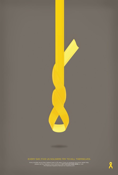 National Hopeline Network борется с суицидами в рядах американской армииАгентство Marked for Trade совместно с National Hopeline Network при помощи рекламной кампании призывают американских солдат не сдаваться перед трудностями и стрессами, а искать в себе силы победить проблемы. А сделать это поможет горячая линия Veterans Crisis, куда может позвонить любой военнослужащий и получить помощь.Каждый день пять американских солдат пытаются свести счеты с жизнью. Агентство: Marked for Trade Арт директор: Phil Jones Копирайтер: Ryan Coleman |