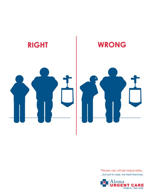 Как правильно пользоваться туалетом, чтобы не убило?Рекламная кампания клиники Aloma, специализирующейся на оказании помощи пациентам с широким спектром симптомов не представляющих угрозы для жизни и не требующих выезда кареты скорой помощи обращается к общественности с довольно таки странной просьбой. А именно: "Пожалуйста, используйте туалеты со всей ответственностью". Собственно кампания и показывает зрителям, как правильно использовать эти самые туалеты, чтобы не нанести себе или окружающим травм.Агентство: isix creative, Orlando, USA Копирайтер: Keith Jensen |