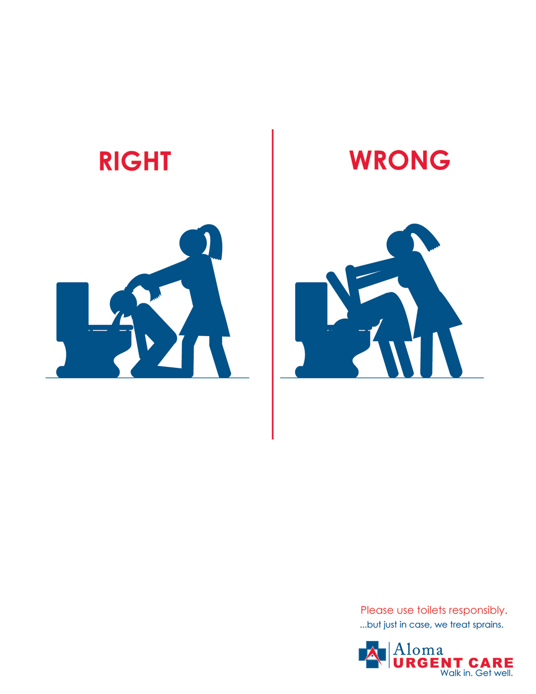 Как правильно пользоваться туалетом, чтобы не убило?Рекламная кампания клиники Aloma, специализирующейся на оказании помощи пациентам с широким спектром симптомов не представляющих угрозы для жизни и не требующих выезда кареты скорой помощи обращается к общественности с довольно таки странной просьбой. А именно: "Пожалуйста, используйте туалеты со всей ответственностью". Собственно кампания и показывает зрителям, как правильно использовать эти самые туалеты, чтобы не нанести себе или окружающим травм.Агентство: isix creative, Orlando, USA Копирайтер: Keith Jensen |
