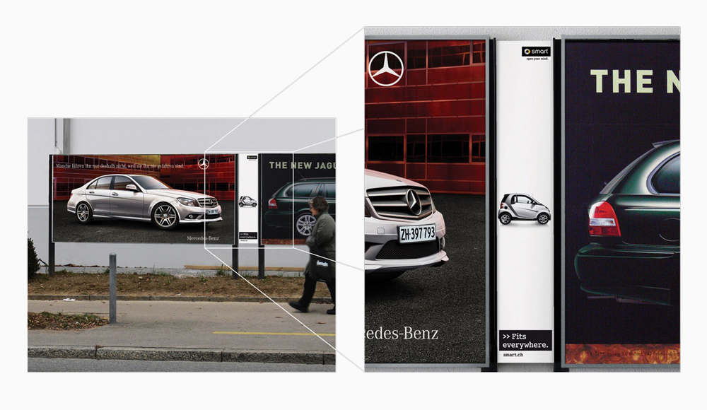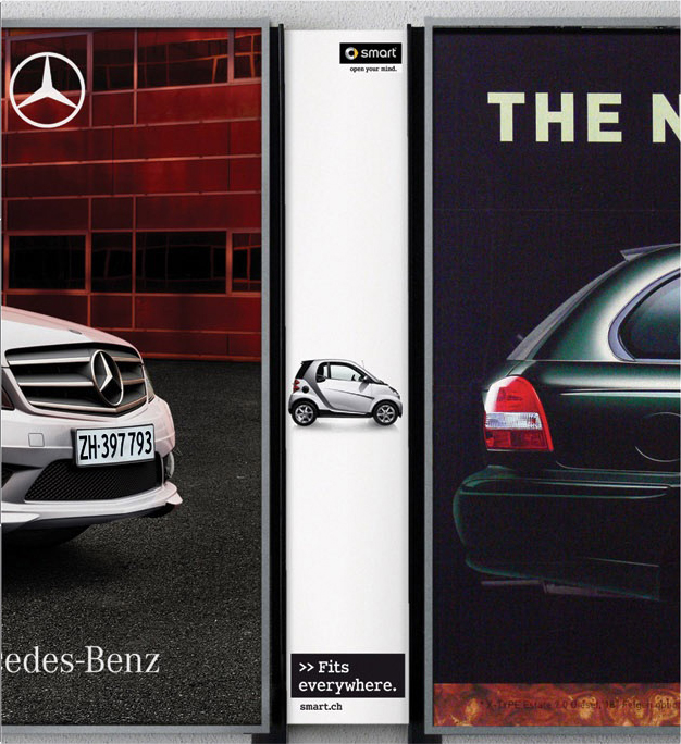 Маленький и умный. Специальный формат для рекламной кампании автомобиля SmartАвтомобильный концерн Daimler сначала явил миру самый маленький масс-маркетовый автомобиль Smart, а теперь и самый узкий рекламный билборд.![]() Slim Poster – уникальный формат, придуманный специально для этой рекламной кампании. Это тот самый случай, когда нестандартный носитель не просто второе дыхание наружки, а ее душа и сердце. Швейцарское агентство Jung von Matt/Limmat пожертвовало унифицированностью в счет изобретательности. br> Реклама демонстрирует в точности то, в чем Smart по-настоящему хорошо. Те, кто хоть раз в жизни парковали машину такого размера утром в центре города, поймут, о чем мы. Слоган «Поместится везде» подтверждает увиденное. KAK.RU |
