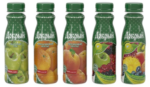 Соковый бренд "Добрый", принадлежащий компании "Мултон", вышел на рынок с новой ПЭТ-упаковкой. Этим летом к ассортименту различных по форме и размерам упаковок (0,2 л, 0,5 л, 1 л, 1,5 л и 2 л) добавилась пластиковая бутылка объемом 0,33 л.