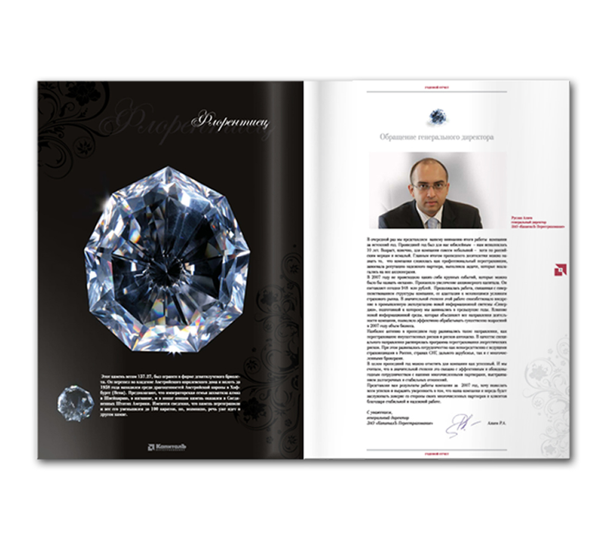 Zebra-Group капитально перестраховаласьZebra-Group издала годовой отчет ЗАО "КапиталЪ Перестрахование", входящего в Страховую группу "КапиталЪ". В отчете подведены основные итоги деятельности компании в 2007 году, представлены финансовые и нефинансовые показатели, стратегия и цели дальнейшего развития.Годовой отчет "КапиталЪ Перестрахование" завершил трилогию 2005-2007гг. Для визуализации были использованы различные образы. В годовом отчете за 2005 год деятельность компании была сопоставлена с игрой в шахматы, которая, как и перестраховочный бизнес, требует продуманных действий, стратегии развития и знания ходов противника. Основное содержание отчета было дополнено интересными фактами о шахматах - истории игры, известных шахматистах, знаменитых шахматных партиях, и визуализировалось фотографиями и рисунками шахматных фигур, досок, часов и прочей шахматной атрибутики. VIP-вариант отчета помещался в набор шахмат из стекла. В отчете за 2006 год для визуальной демонстрации преимуществ "КапиталЪ Перестрахование" были использованы образы стекла и камня. Хрупкие стеклянные предметы, поддерживаемые каменным (гранитным) основанием, символизировали, с одной стороны, прозрачность ведения бизнеса, а с другой - надёжность и устойчивость компании на рынке перестрахования. Визуальный ряд дополнялся текстовыми врезками с познавательной информацией о стекле и граните. В 2007 году для поддержания образа прозрачной, открытой компании и надежного страховщика в годовом издании была проведена аналогия бизнеса "КапиталЪ Перестрахование" с бриллиантами - такими же прозрачными, чистыми и надежными. Отчет украшают фотографии самых известных бриллиантов мира: "Шах", "Кулинан", "Регент", "Орлов", "Санси" и других уникальных камней. Для оформления издания была проведена специальная фотосъемка хрустальных копий бриллиантов из хранилища российского ювелирного завода "Кристалл". Фотографии в годовом отчете сопровождаются описанием бриллианта и историей его появления. Zebra-Group разработала концепцию оформления и дизайн-макет годового отчета, организовала проведение фотосессии, выполнила верстку и печать издания. |