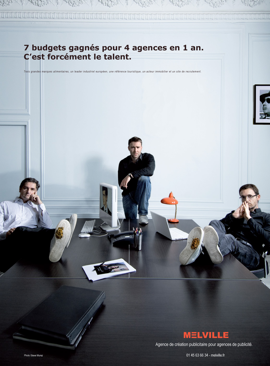 Счастливый профессионализм агентства MelvilleАгентство Melville решило с помощью довольно неоднозначного принта поделиться с общественностью своими творческими успехами. Видимо, причиной такого везения является то, что налипло на левых ботинках работников агентства. "Какая связь?", - спросите вы. Во Франции считается, что если вы наступили в собачьи экскременты левым ботинком, то будьте уверены, это принесет вам удачу.Семь аккаунтов для четырех агентств. Наверное, это талант. Агентство: Melville, Paris, France Фотограф: Steve Murez |