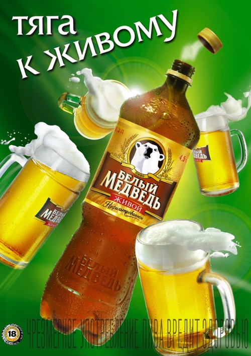 Медведя потянуло на живое. Рекламная кампания EFES и GreyВыпуск нового пива "Белый Медведь Живой" поддержан масштабной рекламной кампанией - на крупнейших национальных телеканалах, в местах продаж и на носителях наружной рекламы в 35 городах страны.Телевизионный ролик для нового продукта под названием "Тяга к живому" разработало рекламное агентство Grey Moscow. По сюжету ролика, Белый Медведь с присущим ему размахом делает живым все вокруг - живой уголок, живая изгородь… "Ведь когда все вокруг живое, то и душа поет!", - говорит голос диктора за кадром. Процесс оживления происходил в одном из живописных уголков Подмосковья, как отмечают в агентстве. Ролик "Тяга к живому"" вышел в эфир национальных телеканалов "Первый", НТВ, а также СТС, РЕН-ТВ, ТНТ, ТВ3, ДТВ VIASAT. Продвижение нового сорта "Белый Медведь Живой" осуществляется также в наружной рекламе - посредством билбордов и в местах продажи пива. Для поддержки нового запуска был разработан сет рекламных материалов, включающий в себя информационные листовки для торговых точек с подробным описанием продукта, его основных характеристик и целей запуска. Состав творческой группы: Компания: Efes Маркетинг директор: Берке Кардеш Менеджер по маркетингу: Ольга Яковлева Бренд-менеджер: Юлия Гирихиди Специалист по маркетингу: Сергей Волкович Агентство: Grey Moscow Креативный директор: Олег Лапшин Копирайтер: Святослав Семеницкий Арт-директор: Татьяна Шерстюк Продюсер: Александр Войтецкий Руководитель группы по работе с клиентами: Анастасия Жданович Исполнитель проектов: Елена Смирнова Продакшен: Ярче! Продюсер: Екатерина Кропачева Режиссер: Михаил Сегал Оператор: Максим Осадчий