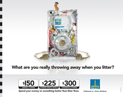 Городской Совет Брисбена всерьез озабочен проблемой мусораМусор - это неизбежные отходы, возникающие в процессе хозяйственной деятельности человека. Однако эти отходы бывают разными: некоторые из них можно утилизировать, а некоторые нет, некоторые практически безопасны для окружающей среды, а некоторые очень вредны.С помощью этой социальной кампании Городской Совет австралийского города Брисбена (Brisbane City Council) и рекламное агентство MAKE призывают хорошенько подумать, прежде чем что-либо выбрасывать: во-первых, вам может грозить немаленький штраф, а во-вторых, то, что вы хотите выкинуть, может вам еще неплохо послужить. Агентство: MAKE, Брисбен, Австралия Дизайнер: Anna Manolatos Творческий директор: Rem Bruijn Арт-директор: Jesse Richardson Копирайтер: Jon Pickersgill Эккаунт-менеджер: Natasha Lanham Стратегическое планирование: Murray Berghan |